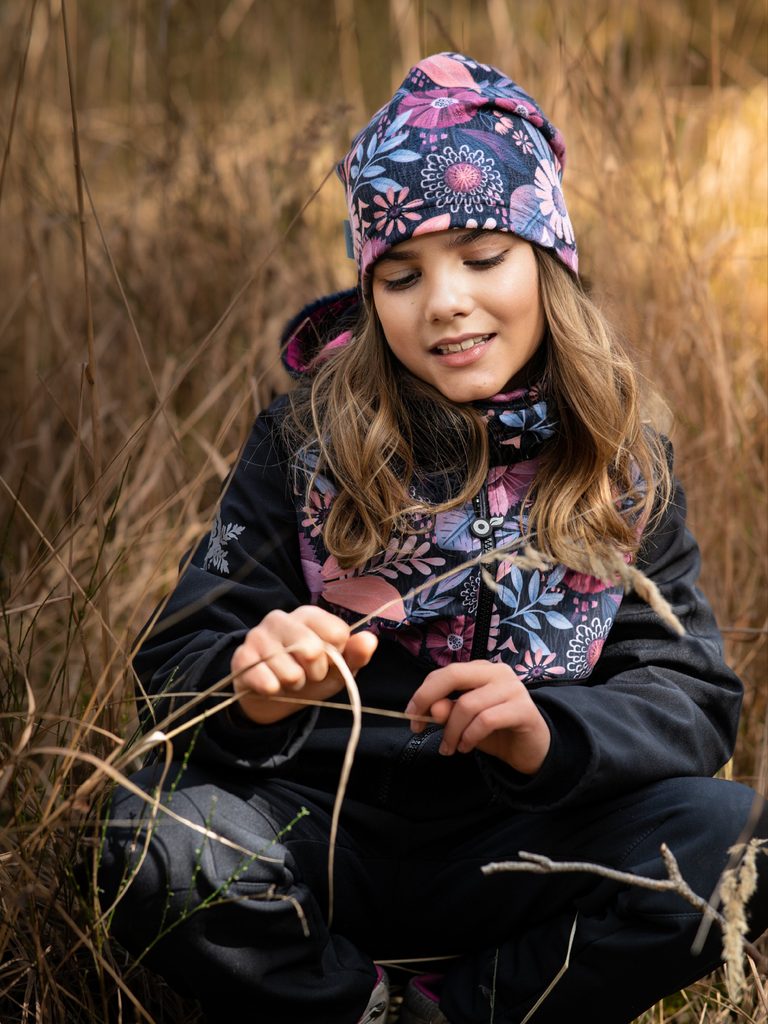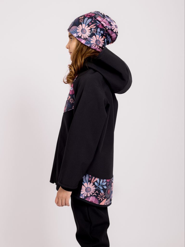 Unuo, Dětská softshellová bunda s fleecem Basic, Černá, Kouzelné květiny