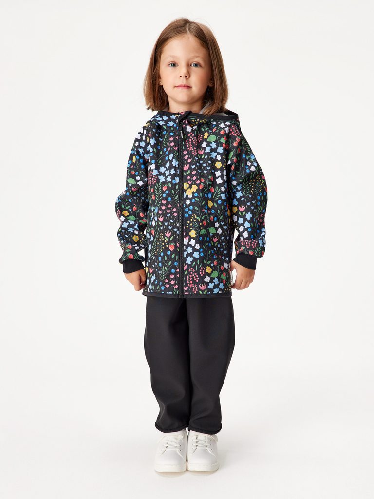 - hlavní materiál, potisk (softshell): rub, líc: 100% polyester, membrána: 100% polyuretan
