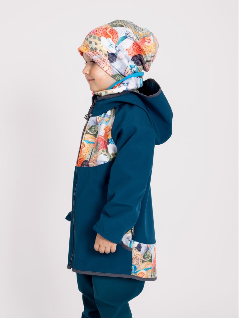 Materiál možná z kosmu, možná se nám maminkám jenom zdá. Je v něm teplíčko, když kolem fouká jako o závod, ale když vysvitne sluníčko, tak se díky speciální membráně v něm děti nepotí. Dnes se tento materiál vyrábí zejména z recyklovaných PET lahví. Menší děti jej využijí na bundičce prakticky na celý rok, ale na kdy se nejvíce hodí, naleznete v našem rádci. Materiál není zcela voděodolný, jako pláštěnka, ale menší deštíky zvládne s přehledem. Malé nehody je možné otřít jen hadříkem. Softshell je opatřen speciální úpravou s vysokou odolností v otěru. Voděodolnost: 5000 mm/H 2O, Prodyšnost: 10000 g/m 2/24hod