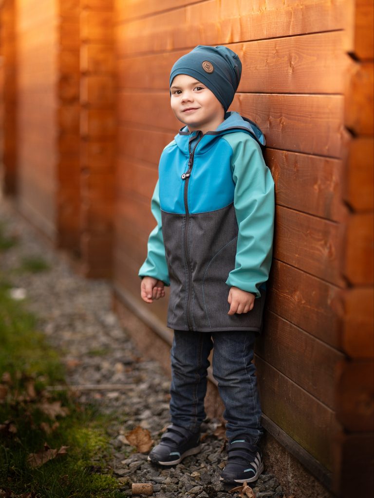 Unuo, Dětská softshellová bunda s fleecem Basic, Multicolor Tyrkysová