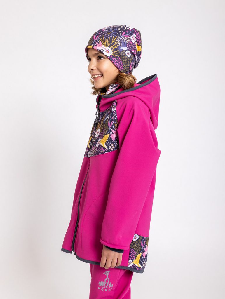 Unuo, Dětská softshellová bunda s fleecem, Fuchsiová, Kolibřík