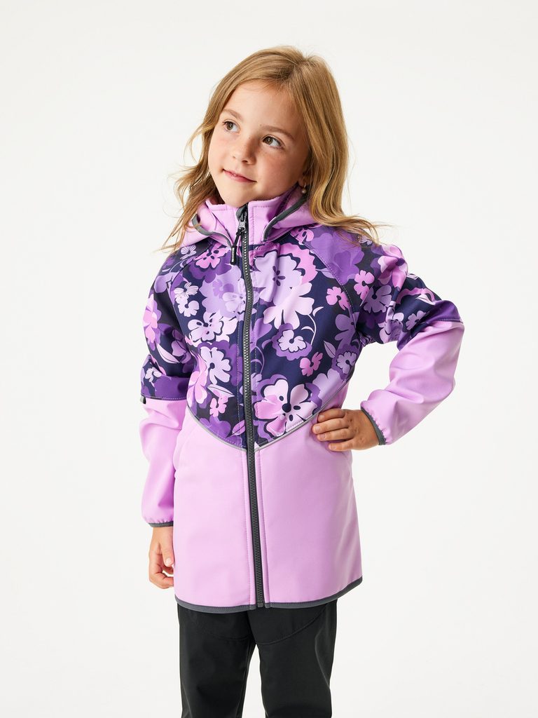 - hlavní materiál, potisk (softshell): rub, líc: 100% polyester, membrána: 100% polyuretan