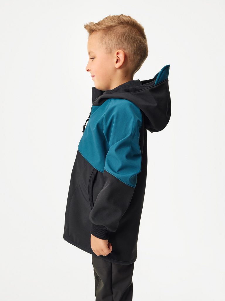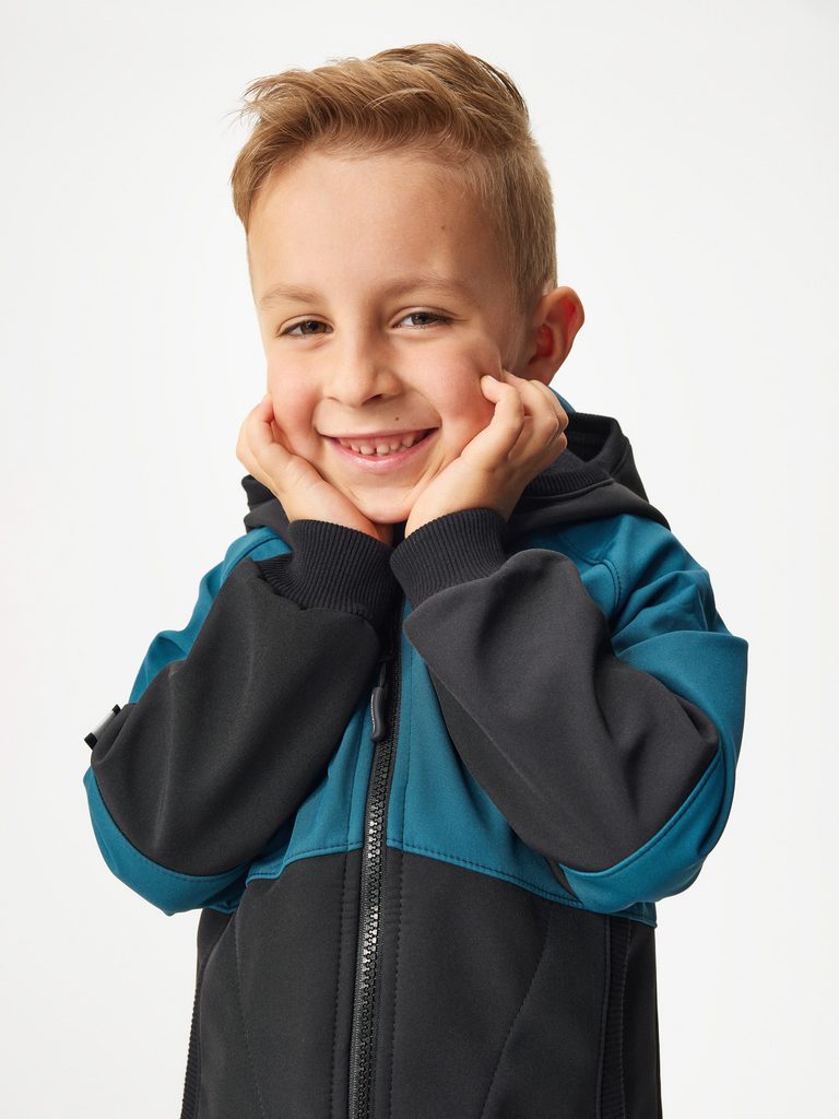 Unuo, Dětská softshellová bunda s fleecem Street, Černá, Kobaltová