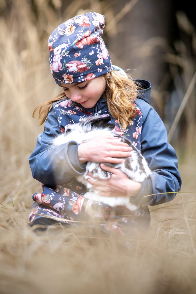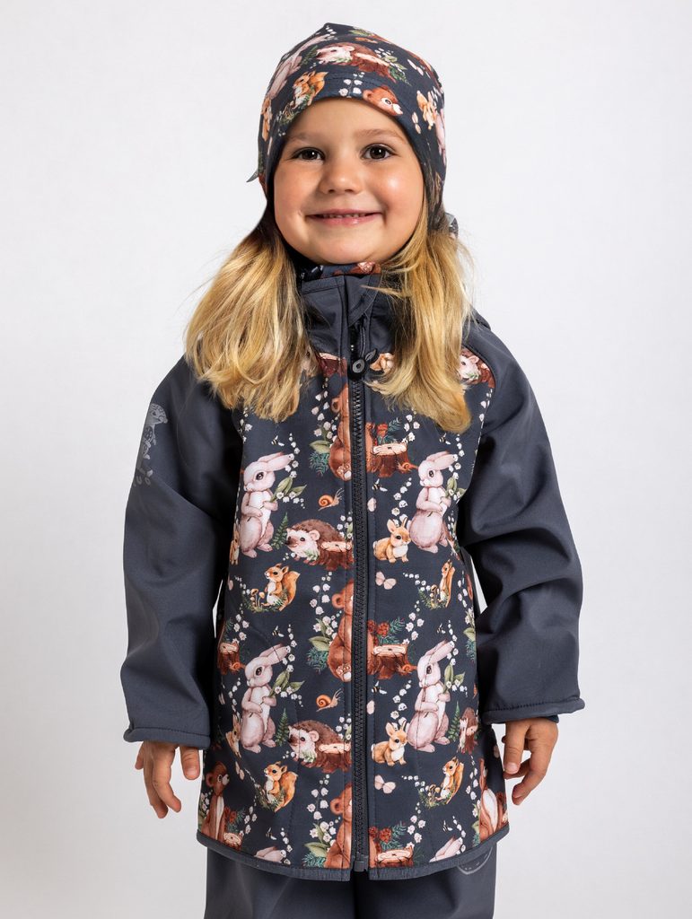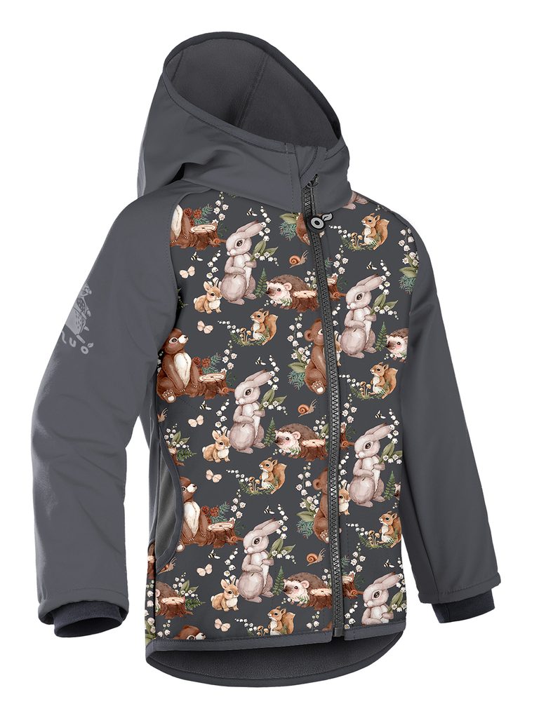 Unuo, Dětská softshellová bunda s fleecem, Tm. Šedá, Zajíček