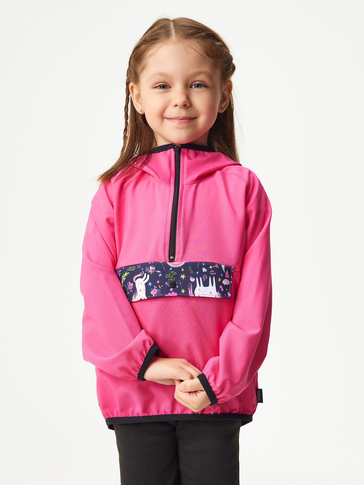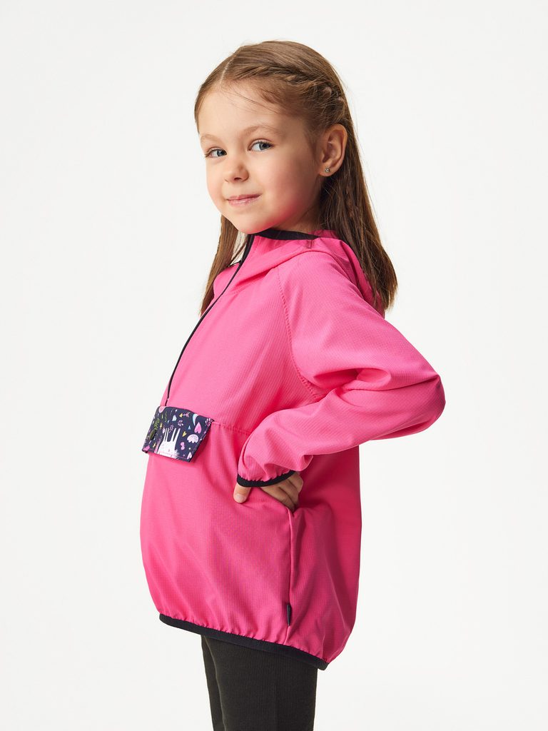 Ideální bunda pro každé letní dobrodružství na výletech nebo venkovních hrách. Obléká se přes hlavu a díky praktické kapse se dá jednoduše složit a sbalit, což znamená, že se bez problémů vejde i do malého batůžku. Ať už vaše děti míří na rodinný výlet, hrají si na zahradě nebo prozkoumávají lesy s kamarády, tahle větrovka je perfektní společník. Střih je velmi univerzální a je navržen tak, aby byl vhodný jak na pěší výlety, tak jízdu na kole nebo jen procházku po městě. Funkční, lehký a odolný materiál ochrání vaše dítě před větrem a mírným deštěm.Větrovka je navržena a vyrobena v České republice.