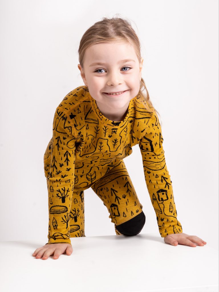 Unuo, Dětské merino legíny Nature, Hořčicová, Město