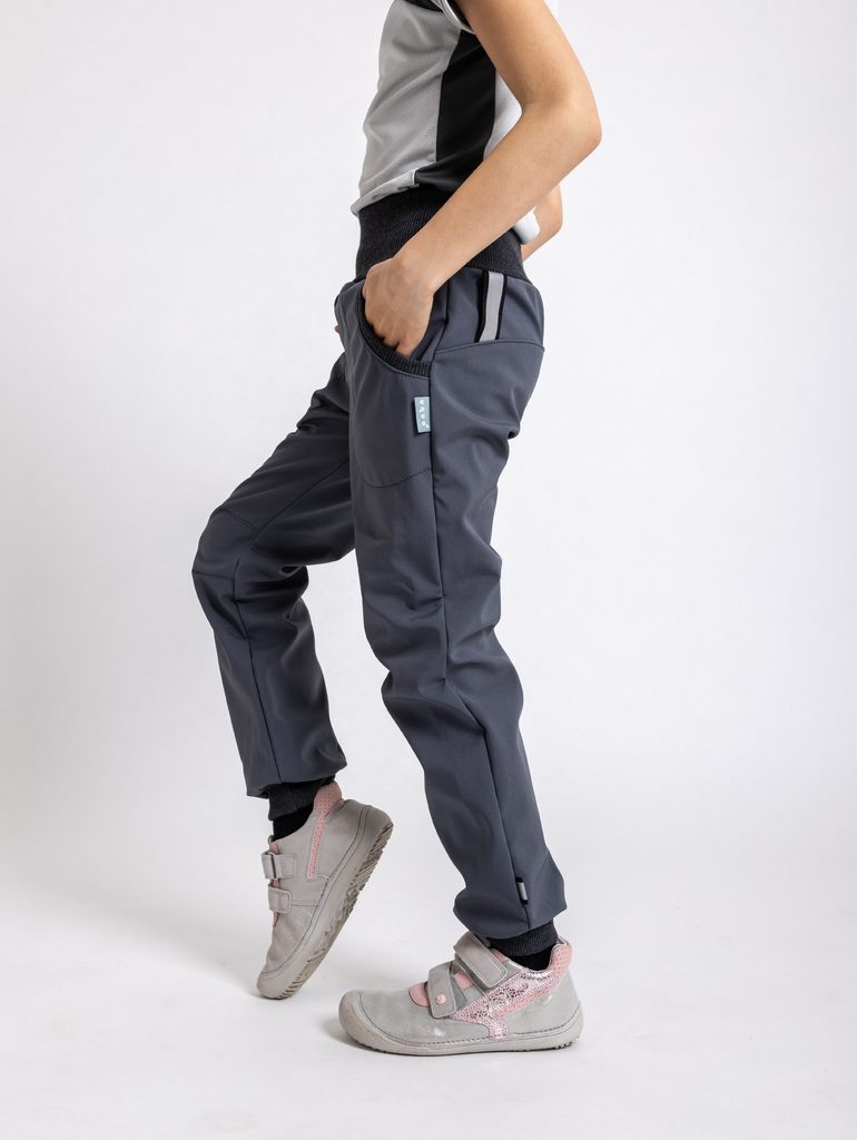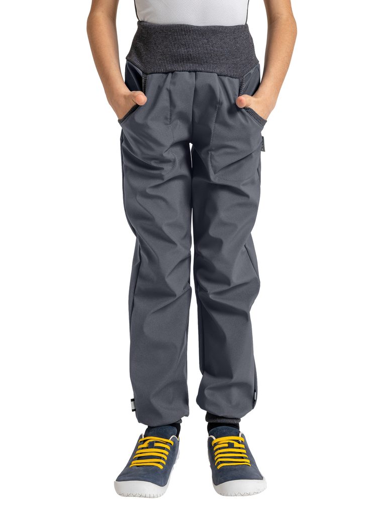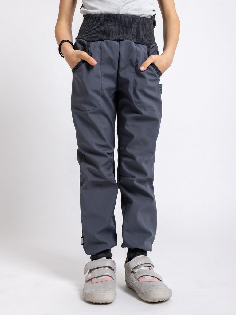 Unuo, Dětské softshellové kalhoty bez zateplení Street, Tm. Šedá