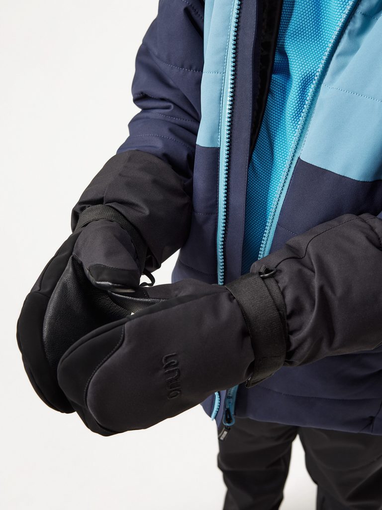 Tyto lyžařské rukavice myslí na vše, co děti při zimních radovánkách potřebují. Mají prodloužený střih, takže se snadno natáhnou přes rukáv bundy a ochrání tak zápěstí před sněhem. Brzdička umožňuje rukavice stáhnout podle potřeby a díky vnitřní gumičce na zápěstí se jen tak neztratí. Výšivka s logem unuo dodává rukavicím stylový detail. Praktické, teplé a připravené na každou koulovačku i lyžovačku. Zimní kolekce byla navržena v České republice a ušita zahraniční šicí dílnou.