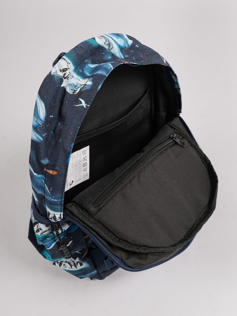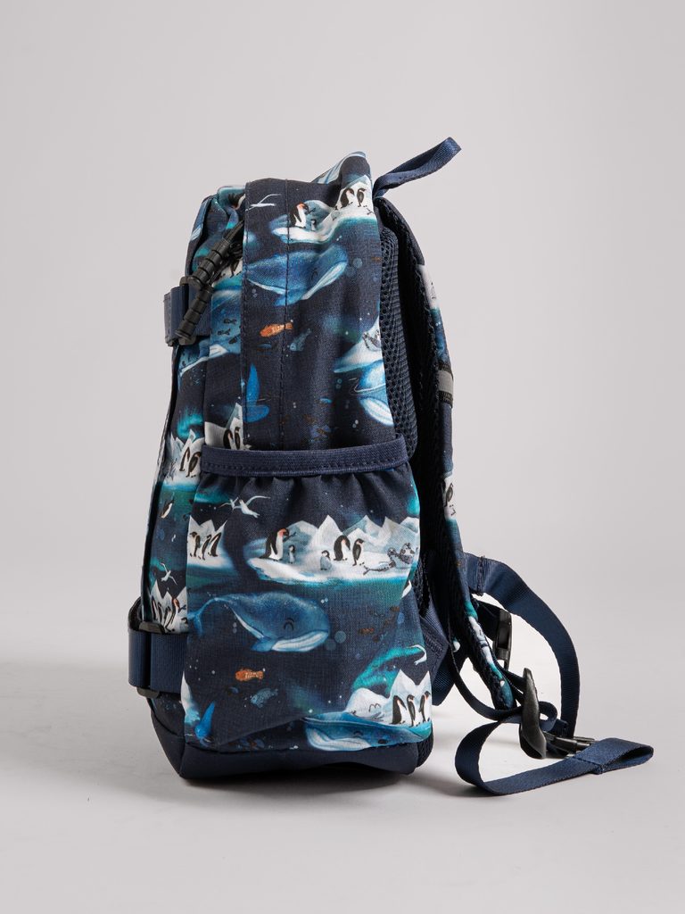 Batoh je vybaven polstrovanými zády a nastavitelnými ramenními popruhy, což zajišťuje pohodlné nošení, zatímco prsní pás poskytuje dodatečnou podporu a stabilitu při nošení všech nezbytností. Uvnitř najdete prostornou kapsu pro knížky, svačiny a oblíbené hračky, zatímco malá zipová kapsa na vnějšku usnadní rychlý přístup ke všem drobnostem. Boční kapsa na láhev pomůže udržet dostatečný příjem tekutin vašich dětí během dne.