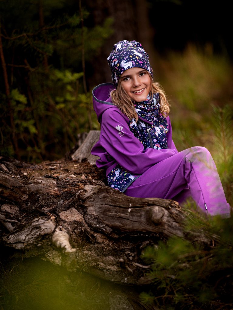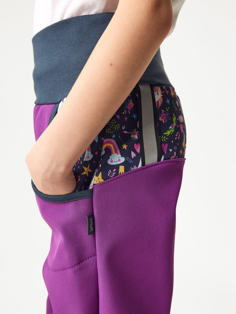 Unuo, Softshellové kalhoty s fleecem, Ostružinová, Jednorožci