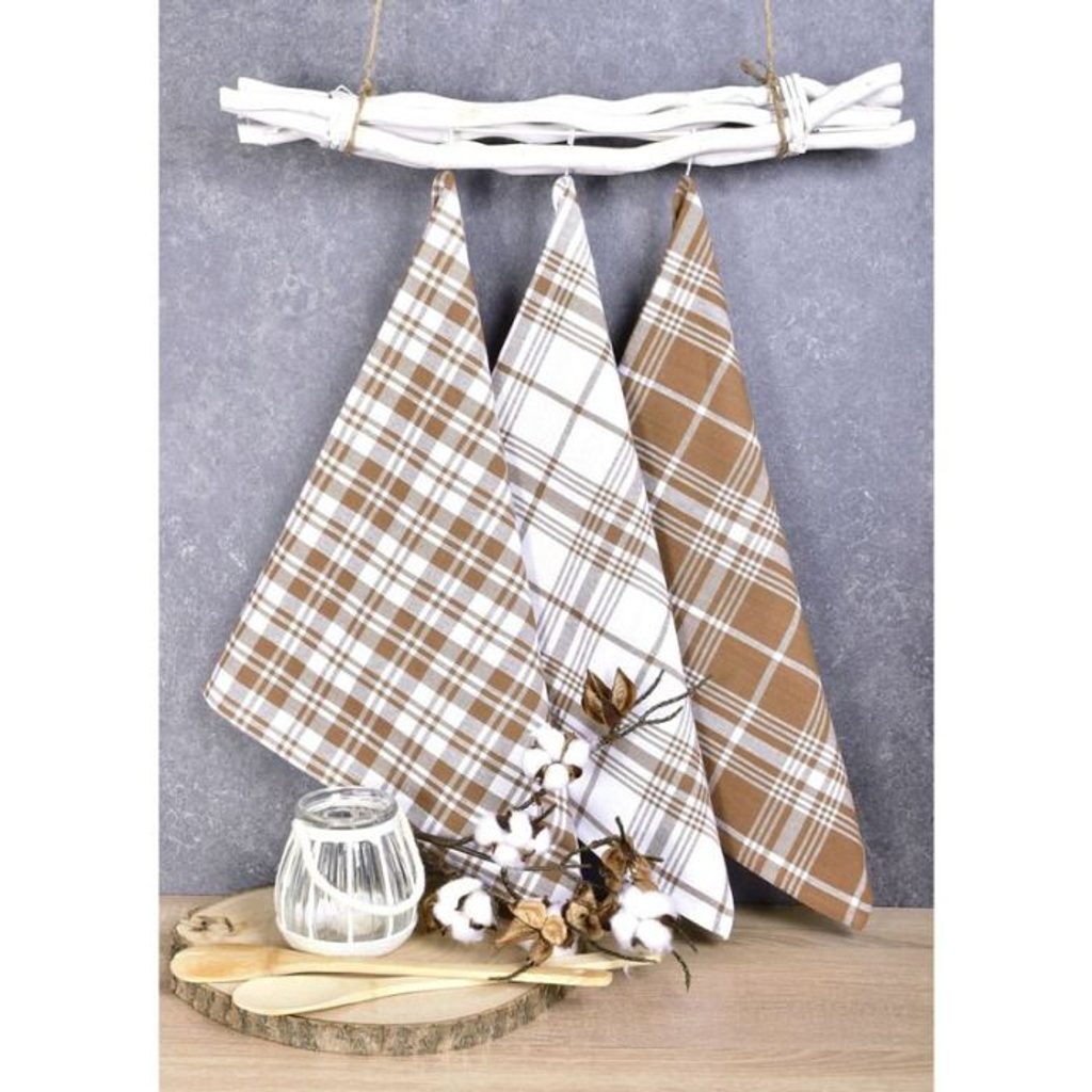 - utěrka 3ks 70x45cm hnědé KÁRO-kuch., 100%bavlna