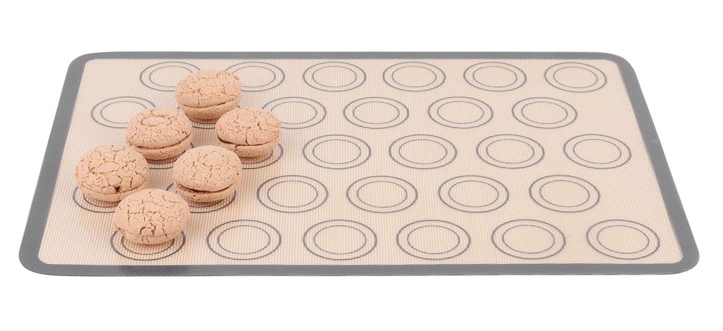 Silikonová podložka s vyznačenými kolečky na makronky • podložka je vyrobena ze skleněných vláken, potažená silikonem • nevyžaduje mazání • nepřilnavá • odolná vůči teplotám od - 20°C do +…