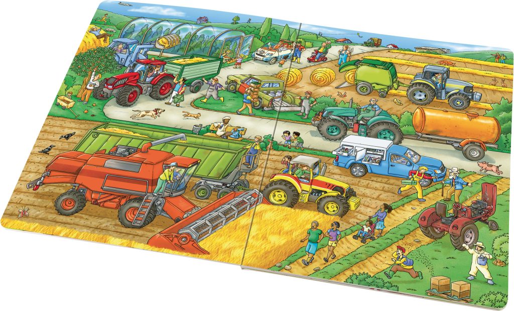Vítejte na statku rodiny Sedlákových. Tahle velká obrázková knížka vás provede všemi kouty hospodářství a vy tu prožijete celý úžasný den! Poznáte zvířata, která zde žijí, lidi nejrůznějších profesí, kteří tady pracují a pomáhají. Budete sledovat impozantní zemědělské stroje při práci a také se bavit, třeba na jezdeckém turnaji nebo na koncertě. Některé postavičky a zvířátka můžete hledat na každé dvojstránce znovu a znovu a sledovat jejich příběhy. Je to docela fuška, ale hlavně velké dobrodružství a zábava!