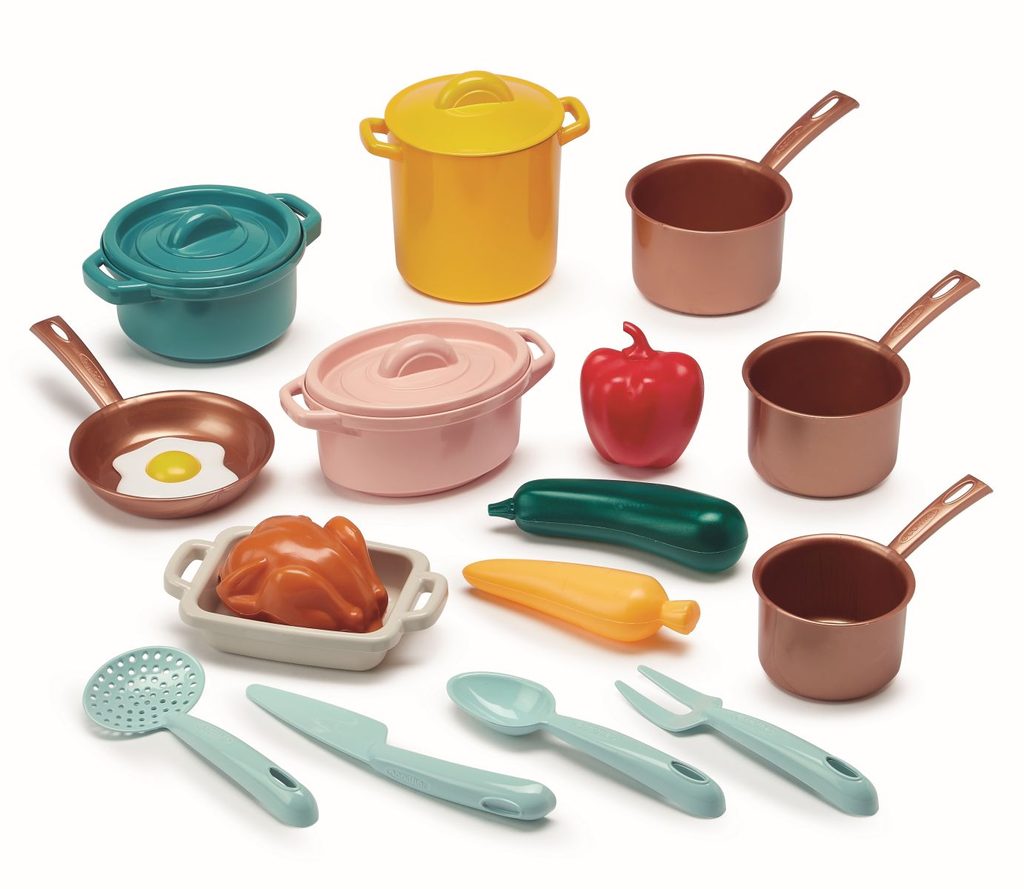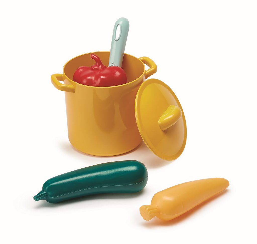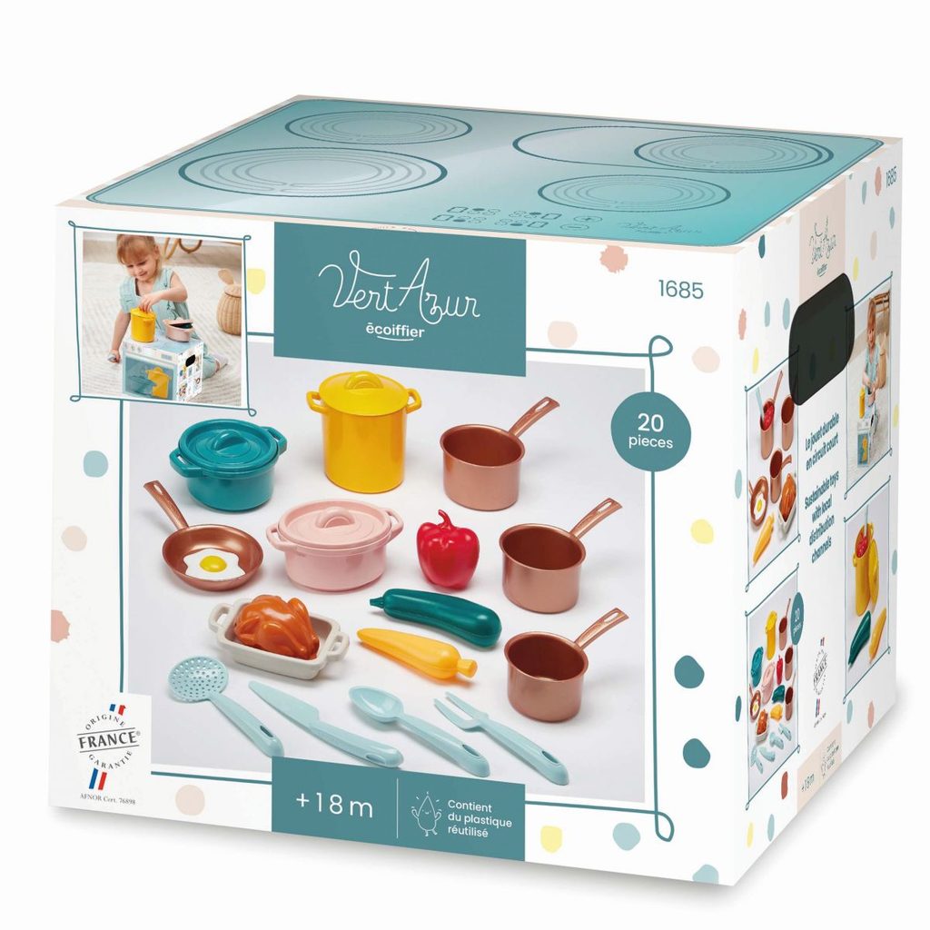 Velká sada nádobí, potravin a hotových pokrmů. Krabice zároveň slouží jako sporák. Celkem obsahuje 20 ks.