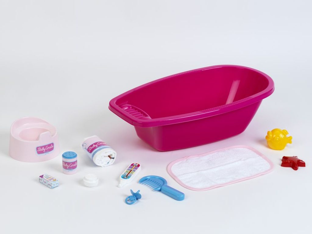 Velká vanička pro panenky s příslušenstvím 12 kusů, které potřebuje maminka k péči o své miminko. Pro panenku o velikosti max 50 cm. Vhodné pro děti od 3 let.