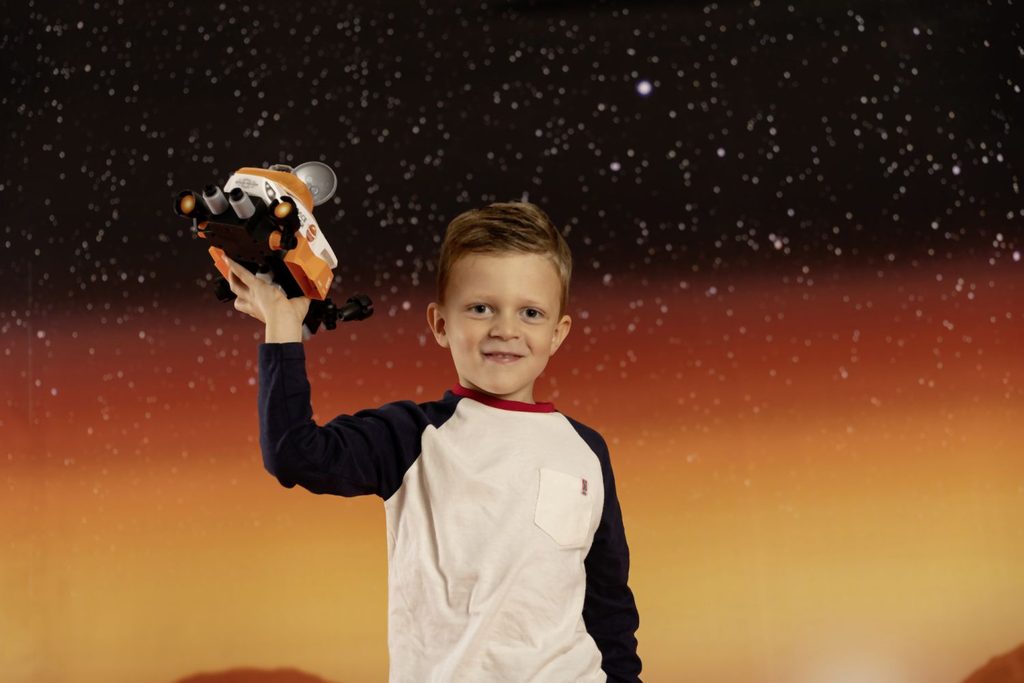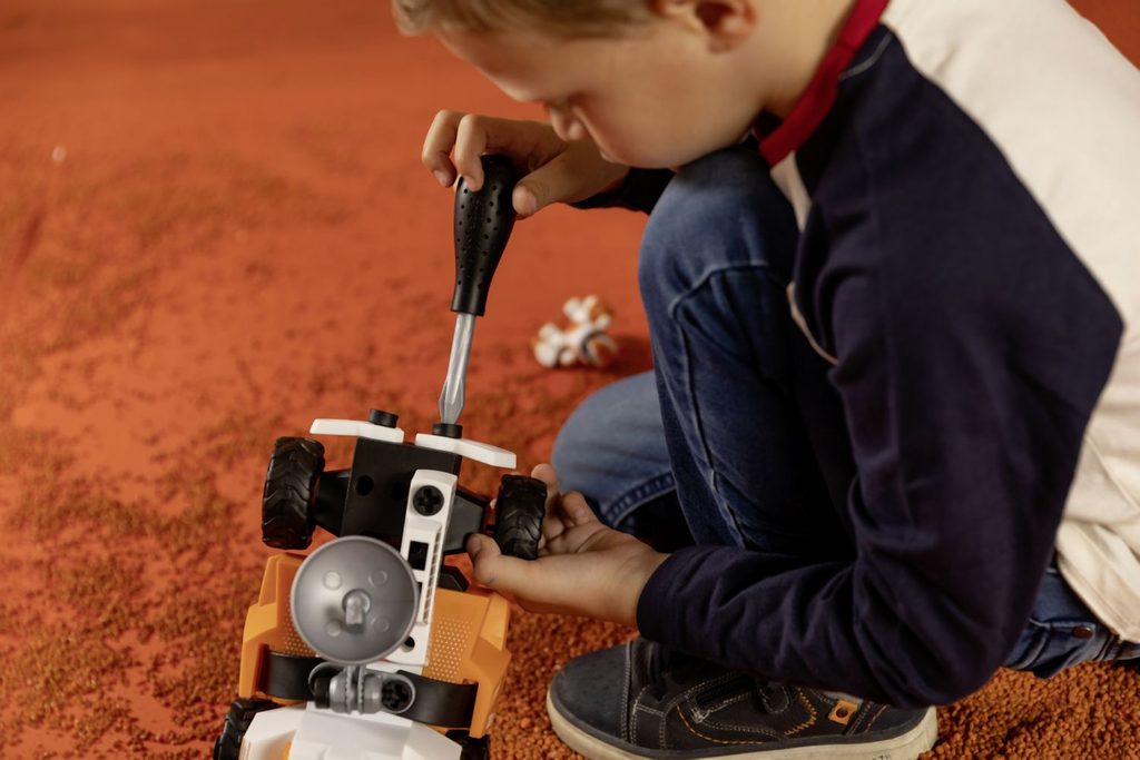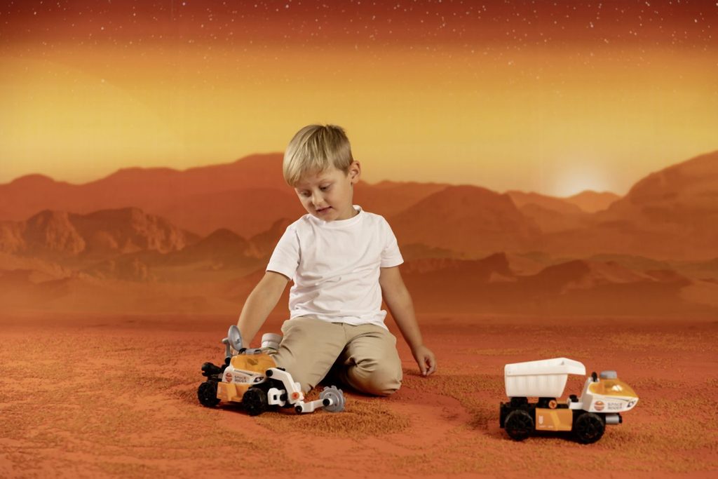 Postav svůj vlastní vesmírný Rover. Balení obsahuje šroubovák a 50 dílů, díky kterým lze sestavit 3 různá provedení vozítka. Součástí je také pohyblivá figurka kosmonauta, který má ruku - šroubovák. Rozměry vozítka: 25 x 13 x 16,5 cm.