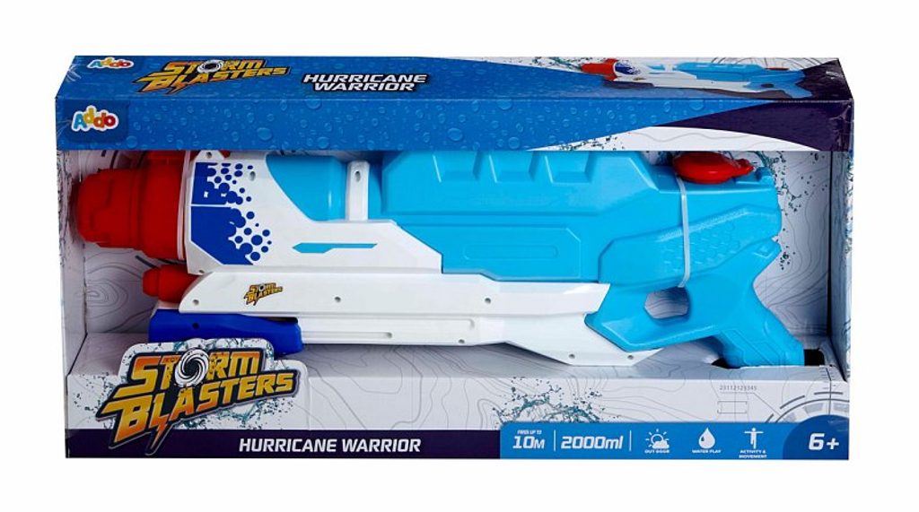Když je čas na vodní bitvu, vyberte sivodní pistoli Hurricane Warrior s 10 metrovým dosahem a 2,0 l nádrží na vodu. Je to bitva, kterou vyhrajete! Venkovní aktivita. Rozměr : 30 x 60 x 8.5cm. Věk: 7+