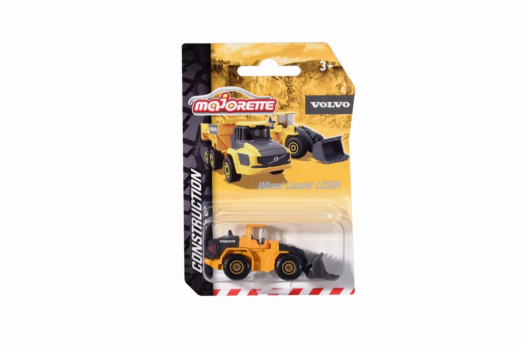 Volvo Edice kovových pracovních a stavebních aut na volnoběh, s pohyblivými částmi, 6 druhů (pásové rýpadlo, kolový nakladač, dampr, tahač s korbou, míchačka a sklápěčka). Délka autíčka 7,5 cm.