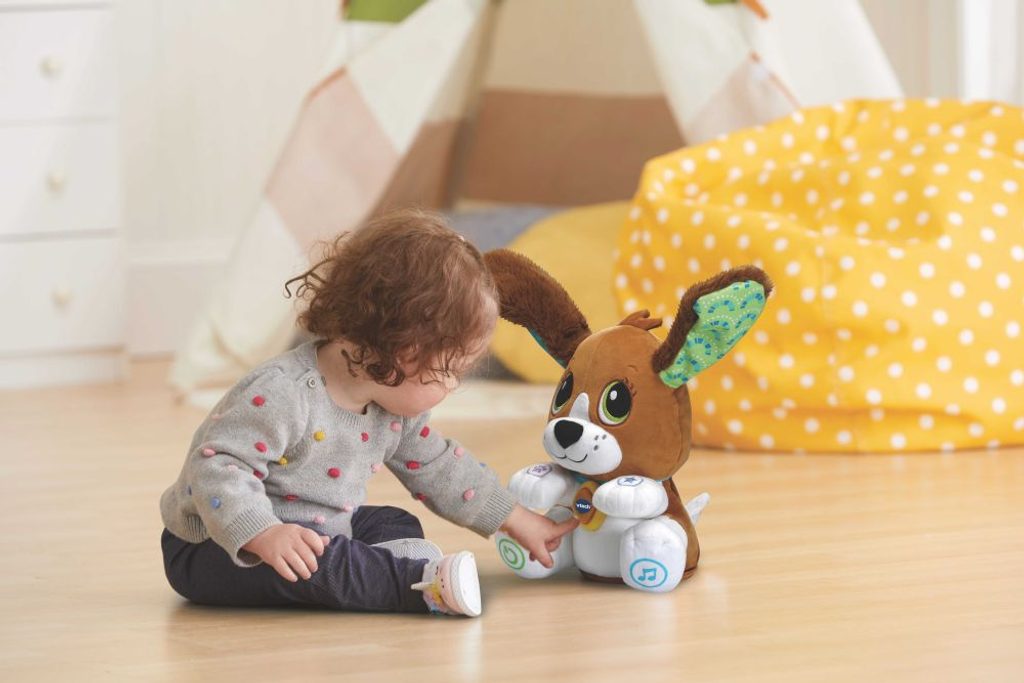 Roztomilý mluvící pejsek s mávajícíma ušima pomáhá dítěti rozvíjet slovní zásobu a porozumění slov ve větách. Učí písmena abecedy a počítání do pěti. Pejsek interaktivně komunikuje s vaším dítětem a oba se zároveň úžasně baví opakováním všeho, co dítě říká. Pohybuje hlavou, mává ušima i v rytmu chytlavých písniček.