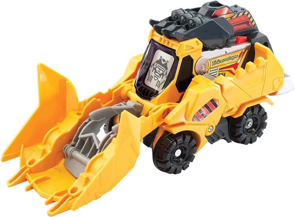 V okamžiku se tento zuřivý dinosaurus dokáže proměnit na super buldozer! Displej s animacemi se mění v závislosti na režimu hry: Dinosauří tvář nebo řidič v režimu buldozeru.