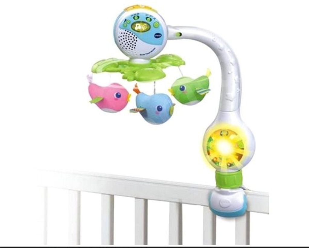 Vtech Zpívající kolotoč v českém nebo slovenském jazyce a s roztomilými ptáčky. Lze snadno a rychle připevnit na postýlku, kočárek i autosedačku.
