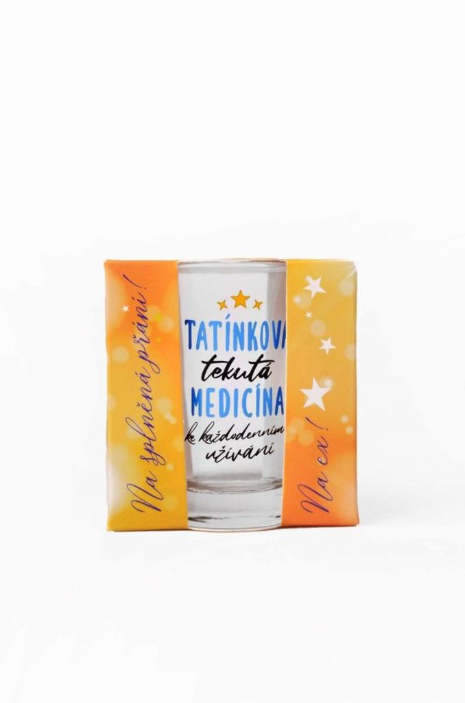 Vtipný panák - Tatínkova medicína. Vtipný panáček Vám jistě padne do oka. Skvěle zapadne do každé kuchyně a potěší každého milovníka dobré pálenky.