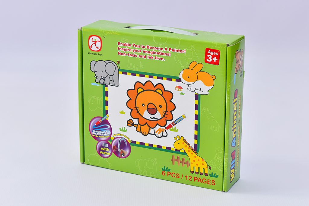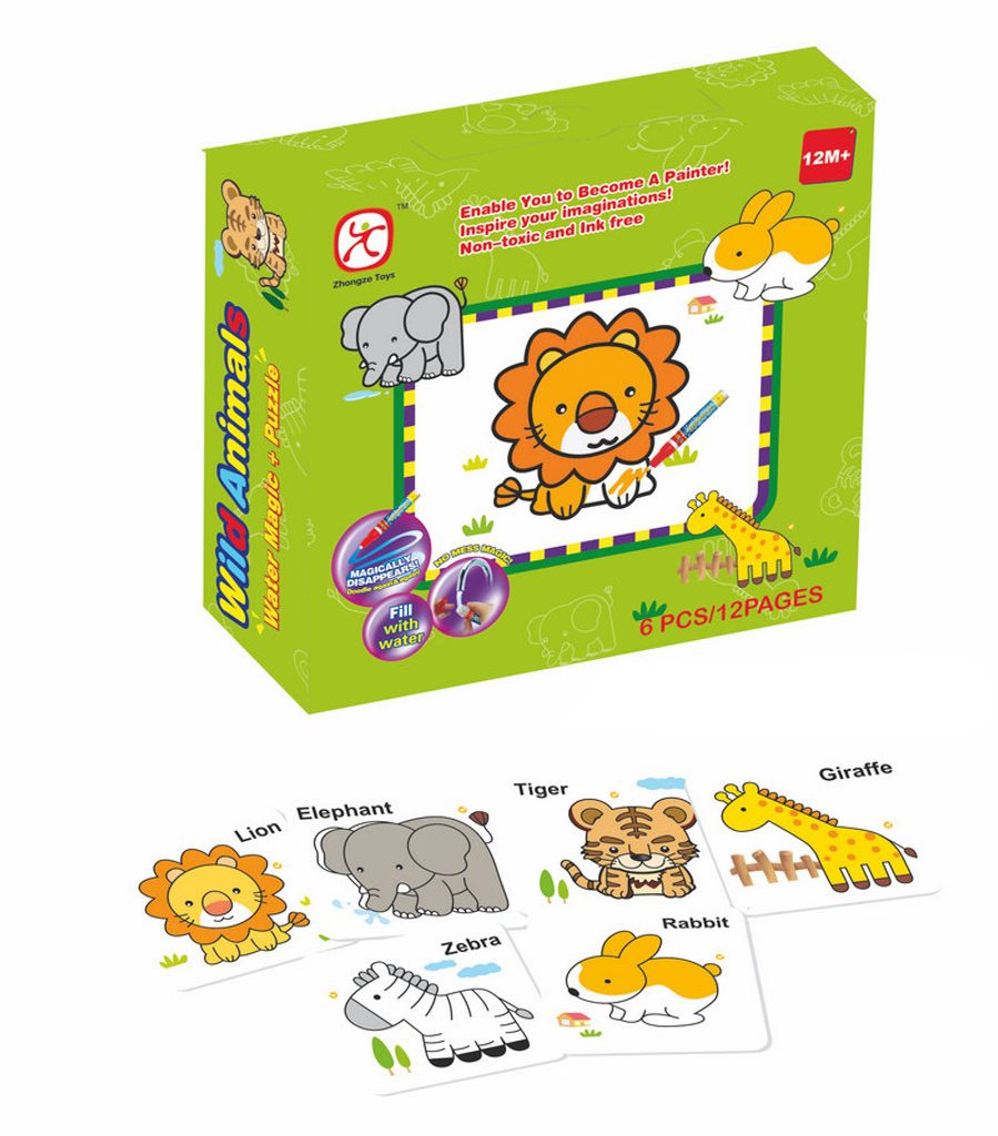 Z jedné strany vybarvovací omalovánky, které vybarvuješ tužkou, ve které je voda. Po zaschnutí můžeš opět barvit. Na druhé straně jsou velké puzzle.
