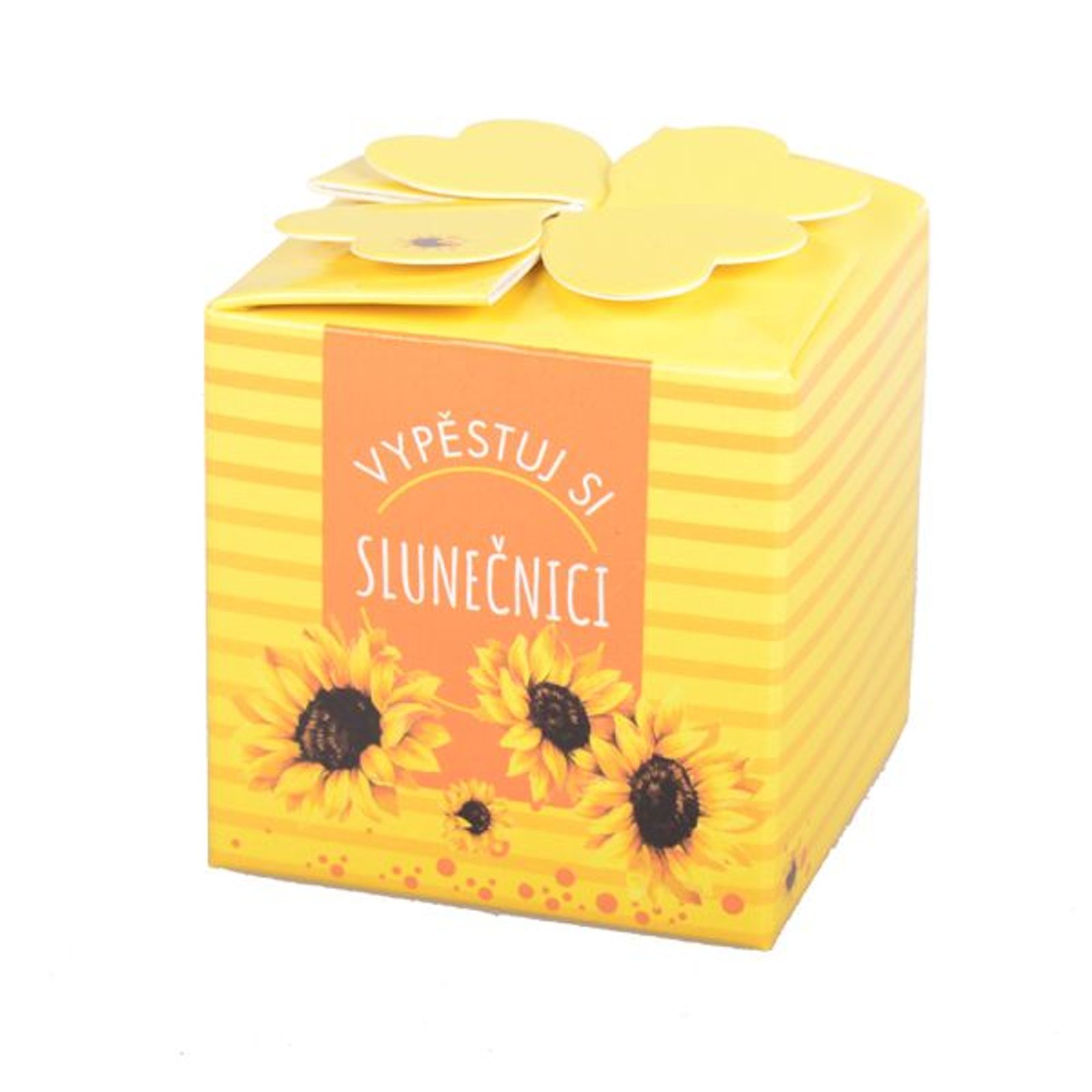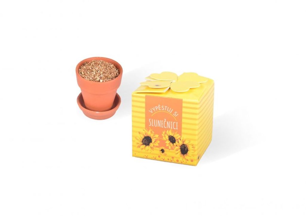 Nabízíme vám originální sadu, díky které si vypěstujete vlastní slunečnici, která obdarovanému bude dělat společnost opravdu dlouho. Stačí jen zasadit semínka, která jsou součástí balení, přidat substrát, zalít vodou a čekat, až se Vám krásná rostlinka objeví ve vašem květináčku. Tento dáreček je skvělý k narozeninám, svátku, MDŽ nebo třeba pro milovníky zahradničení a pěstování.