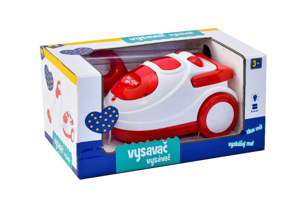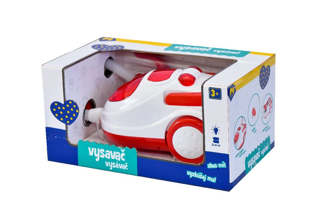 Vysavač, který vydává zvuky a svítí. Je na baterky (3xAA).