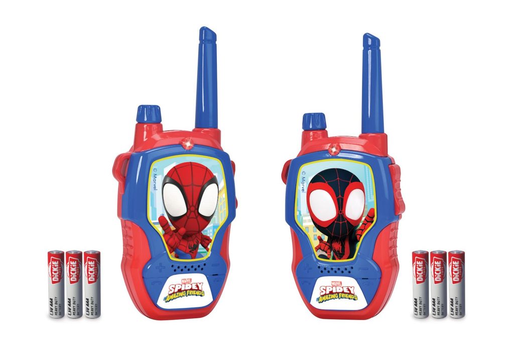 Dětské vysílačky v designu Spidey, 2,4 GHz s dosahem až 100 m, potlačení šumu, 2 ks v setu. Barva červeno-modrá, Spidey/Miles. Velikost 16 cm. Dětské vysílačky v designu Spidey, 2,4 GHz s dosahem až 100 m, potlačení šumu, 2 ks v setu. Barva červeno-modrá, Spidey/Miles. Velikost 16 cm.