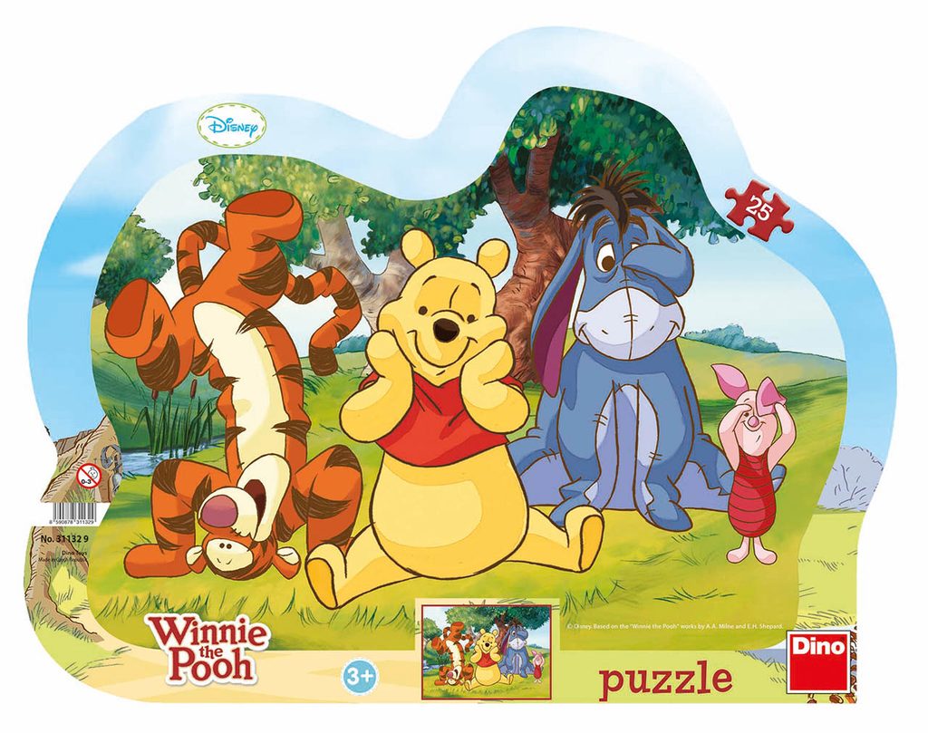 Dětské deskové puzzle 25 dílků v tvarovém rámu s motivem Medvídka Pú a jeho přátel.