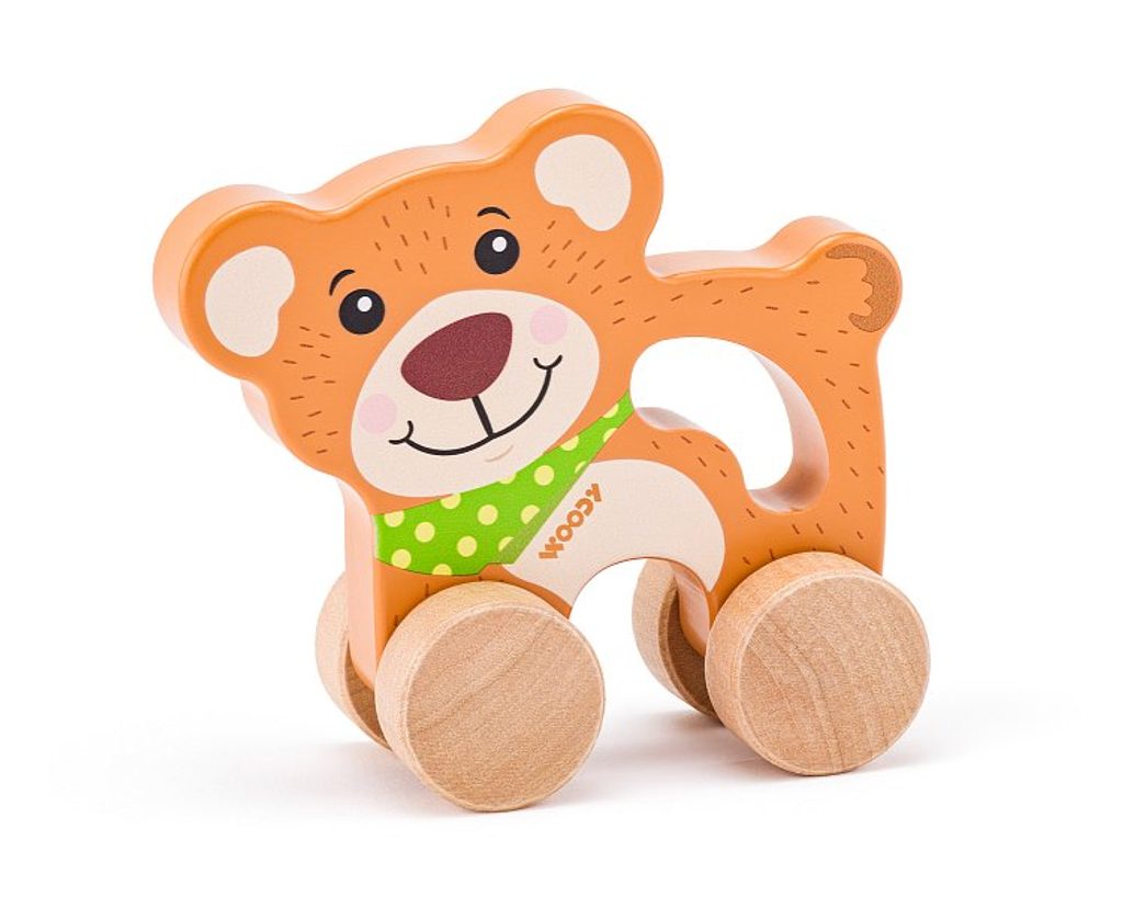 WOODY Medvěd na kolečkách s držadlem