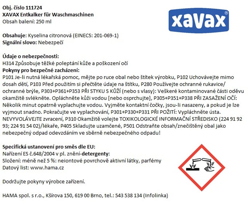 - odstraňuje vodní kámen ze všech důležitých částí pračky