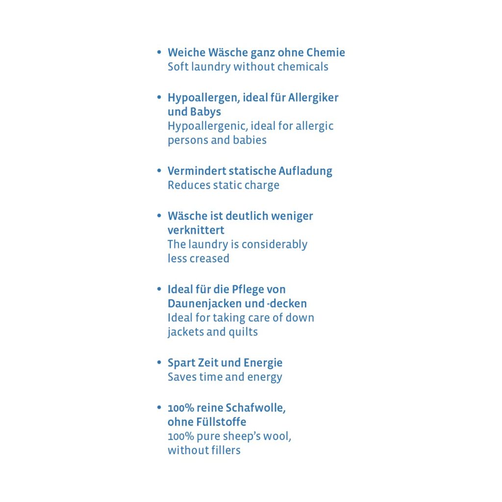 - měkký vlněný materiál pro méně hluku v porovnání s koulemi z umělé hmoty