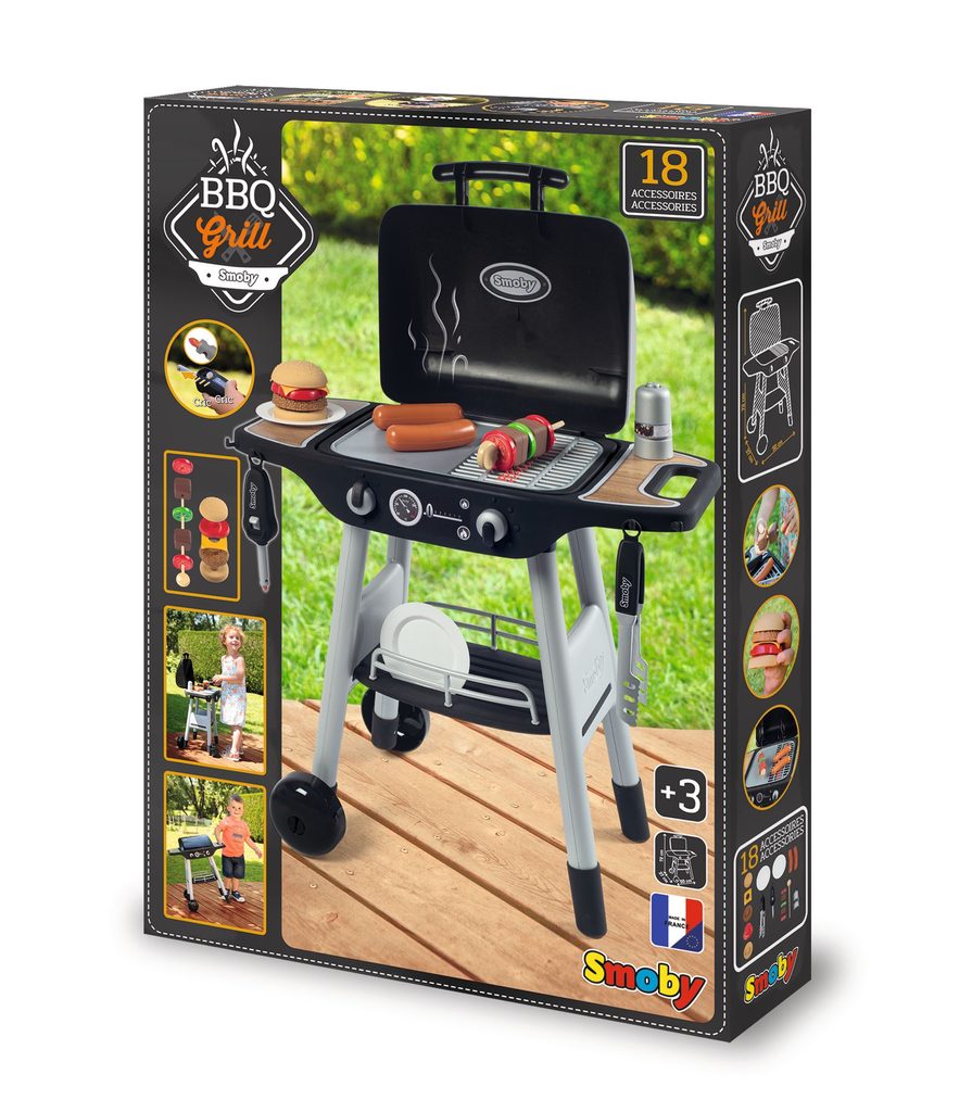 Zahradní gril s víkem. Součástí grilu je grilovací náčiní a potraviny pro přípravu pochoutek. Magický systém se zatahovacími plameny. Obsahuje 18 ks příslušenství. Rozměry: 50 x 72,2 x 37 cm.