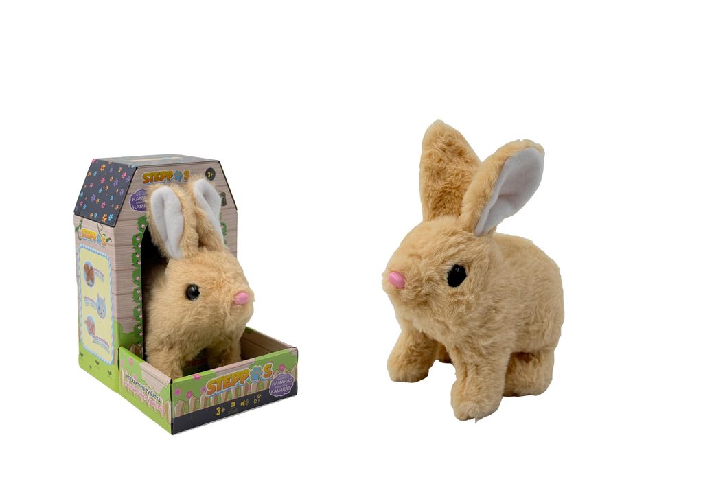 Zajíček na baterie chodí a vydává zvuk. Zajíček na baterie chodí a vydává zvuk.