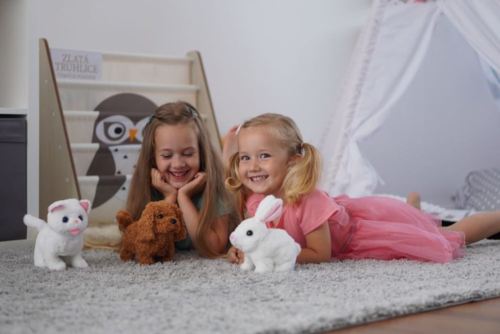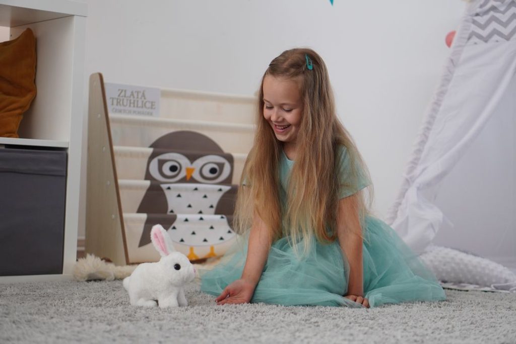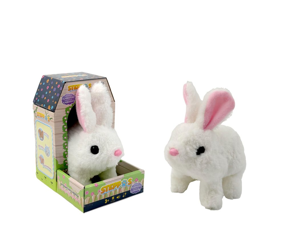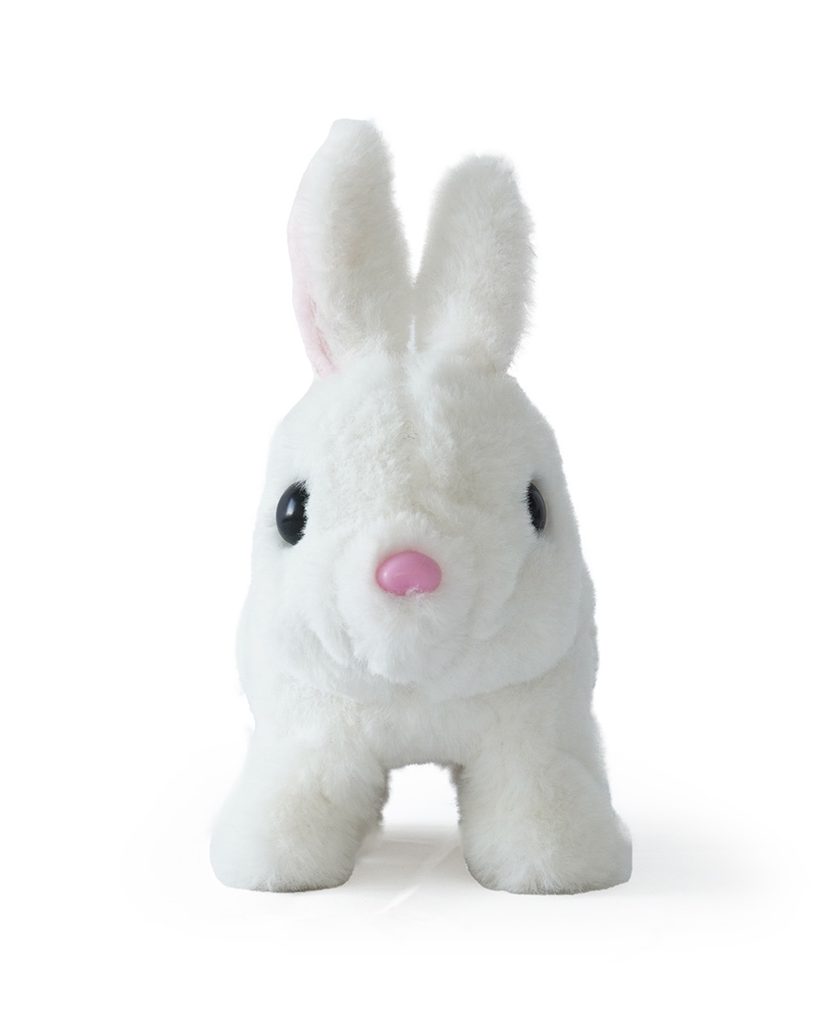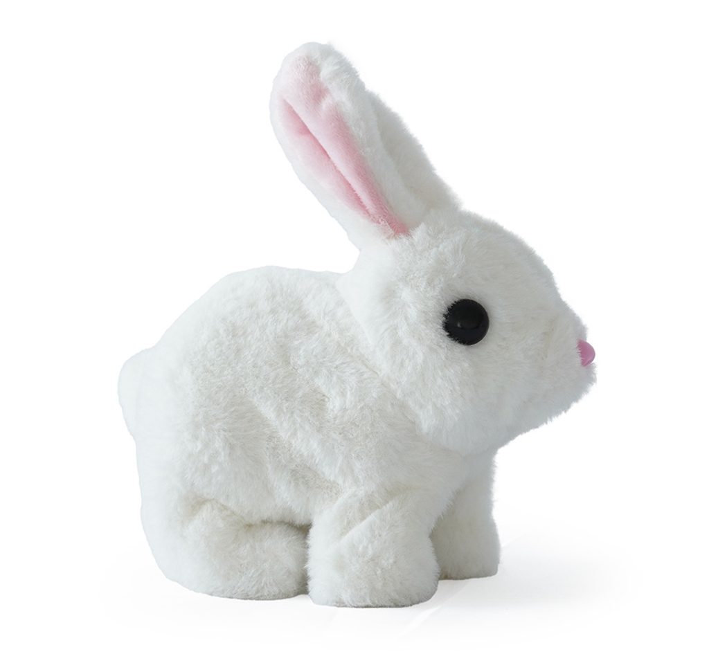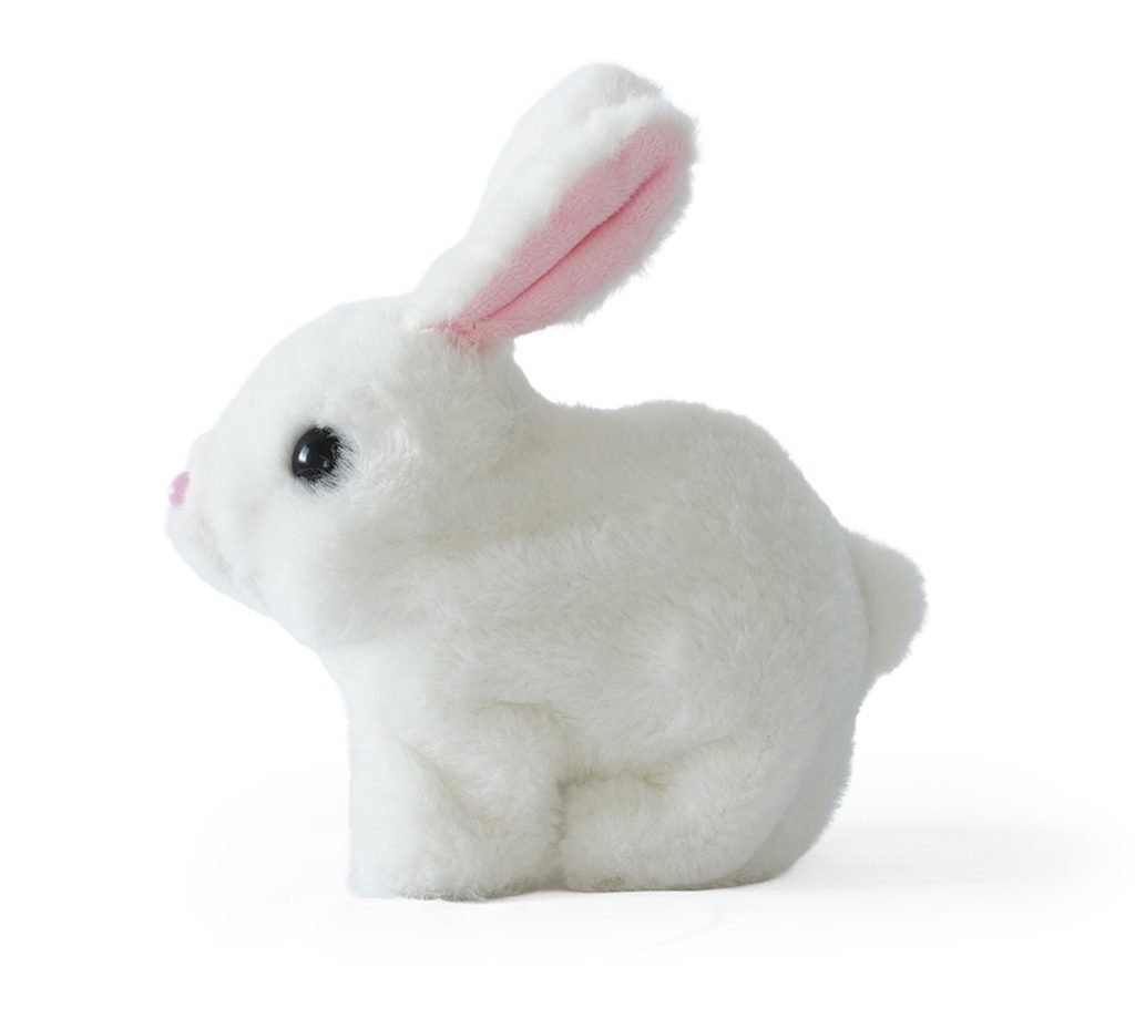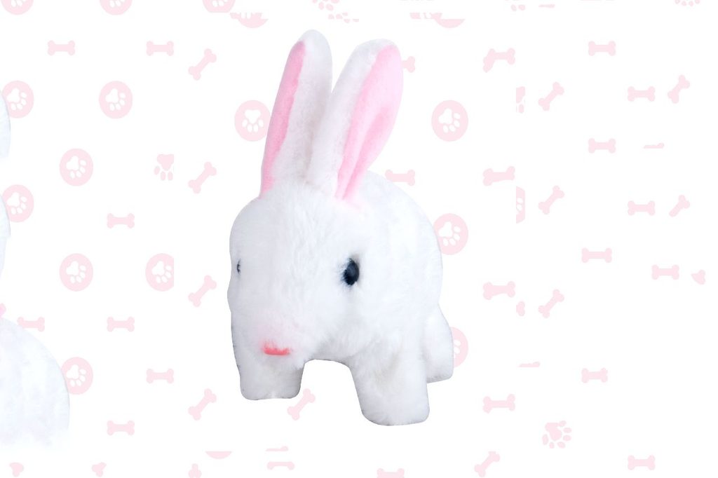 Zajíček na baterie, který vydává zvuk, chodí a hýbe čumáčkem.