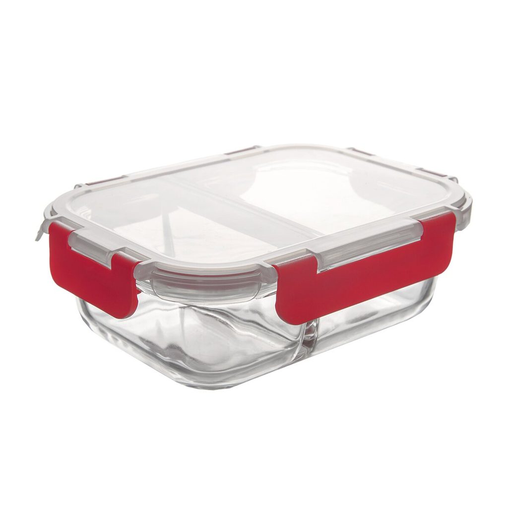 Dělená zapékací miska z žáruvzdorného borosilikátového skla s plastovým víčkem s klipy a s těsněním nabízí mnoho výhod použití. Vzduchotěsné víčko zajišťuje delší uchování čerstvých potravin. Navíc je díky těsnění vodotěsné, takže jsou misky ideální na přenášení potravin bez obav, že by se tekuté omáčky či polévky vylily. Borosilikátové sklo dózy je odolné vysokým teplotám od -20 °C do +300 °C, můžete v něm potraviny ohřívat, lze v něm zapékat potraviny v klasické troubě, nepřejímá barvu, chuť ani aroma z uložených potravin a ani při dlouhodobém uchování potravin neovlivňuje jejich kvalitu. Pokud v nich potraviny zapečete, každý si pak může pohodlně odnést do práce svoji porci oběda. V dózách můžete připravené jídlo také uchovávat v chladničce i v mrazničce. Dělené jsou na 2 části a silikonové těsnění je i na tomto předělu, takže se potraviny nepřelévají z jedné části do druhé. Při nasazování víčka dbejte na pečlivé a přesné nasazení na misku a nebojte se vyvinou trochu větší sílu na zacvaknutí klipů na víčku. Materiál: borosilikátové sklo, plast PP (víčko), silikon (těsnění). Lze je použít v MVT (pouze sklo), v klasické troubě (pouze sklo), v mrazničce, v myčce na nádobí. Rozměry: 23,5x18x7,5 cm, o. 500 ml a 800 ml.