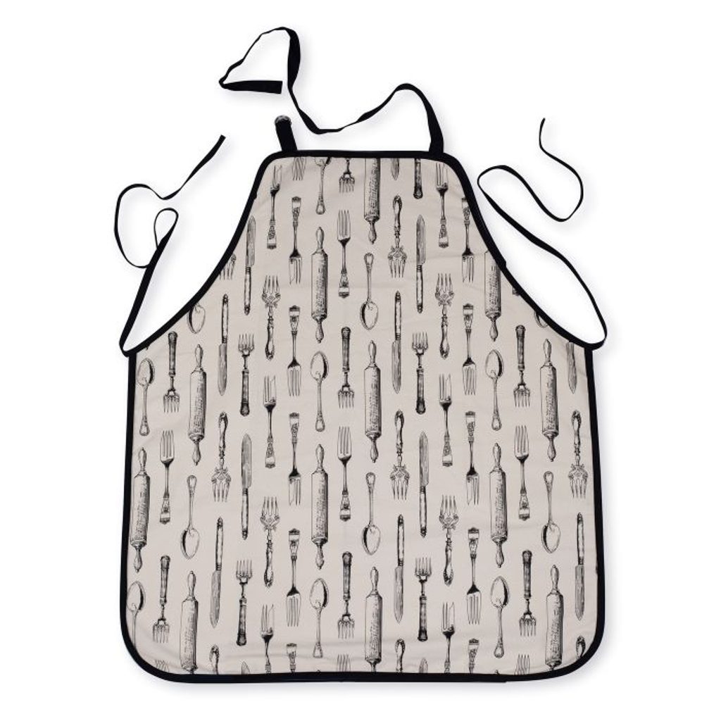 - zástěra 66x76cm, VZOR příbor+válek, bavlna