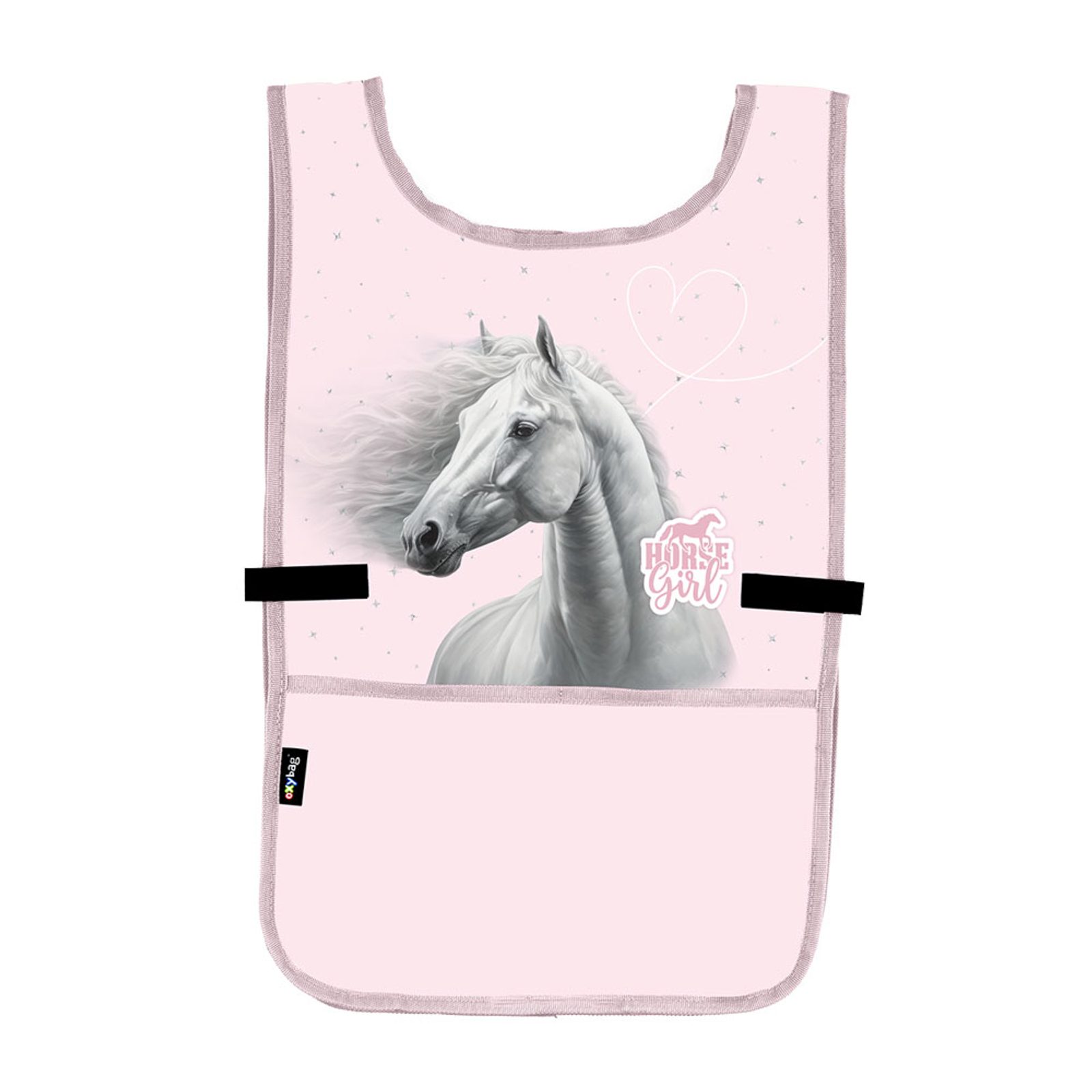 Zástěra pončo do výtvarné výchovy či na jiné tvořící aktivity. Oblékání přes hlavu, po stranách zapínání na druk. Vpředu jedna prostorná kapsa. Materiál 100% polyester.