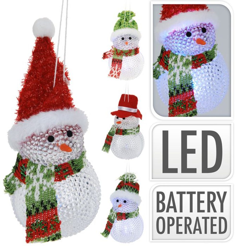 - závěs SNĚHULÁK d6x10cm,4druhy, vč.bat., LED, dek.