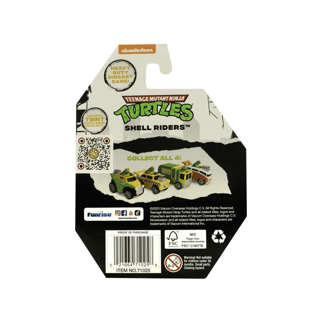 Kovová auta v měřítku 1:64 s oblíbenou postavou želvy Ninja za volantem. Vyrobeno z kvalitního materiálu. Nasbírej je úplně všechny! Vhodné pro děti od 4 let.