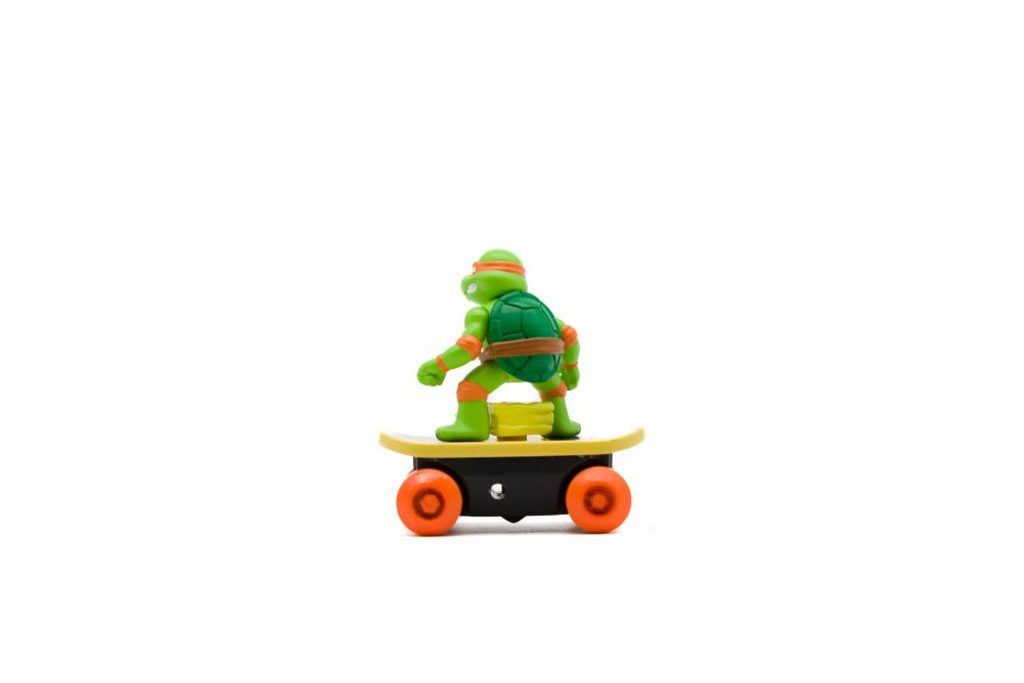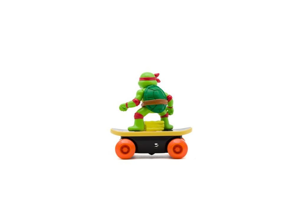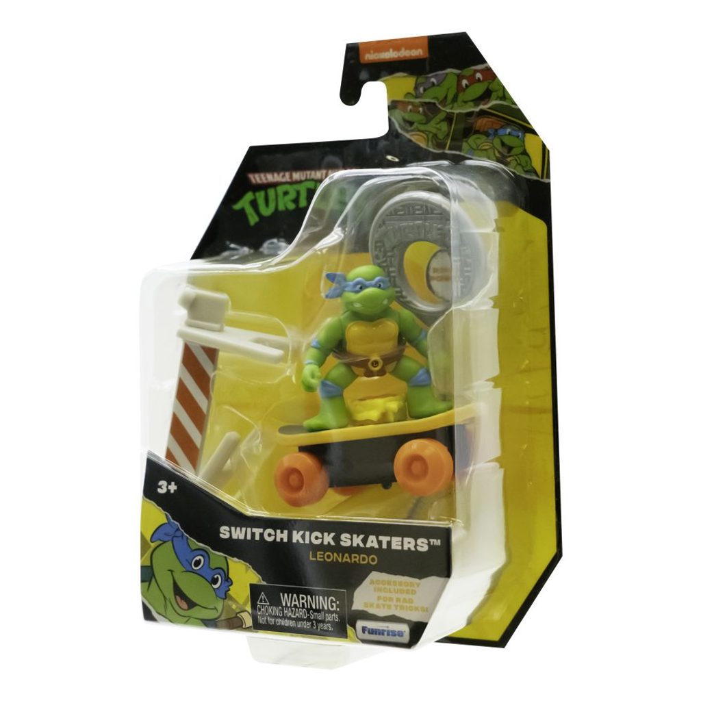 Teenage Mutant Ninja Turtles Switch Kick Skaters je auto-stabilizační skateboard, který vám umožní předvádět skvělé skate triky a pokaždé přistát na všech čtyřech kolech. Auto-stabilizační mechanismus (gyro) uvnitř skateboardu je napájen natahovacím lankem. Stačí zasunout natahovací lanko do skateboardu, vytáhnout a můžete začít provádět ty nejlepší triky s želvami Ninja. Nasbírejte všechny 4 postavy! Vhodné pro děti od 4 let.