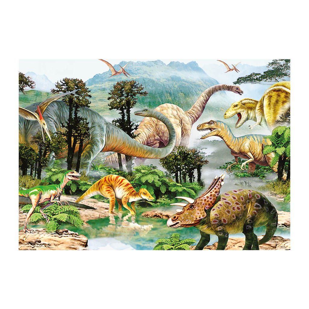 Dětské puzzle se 100 extra velkými dílky s motivem dinosaurů.